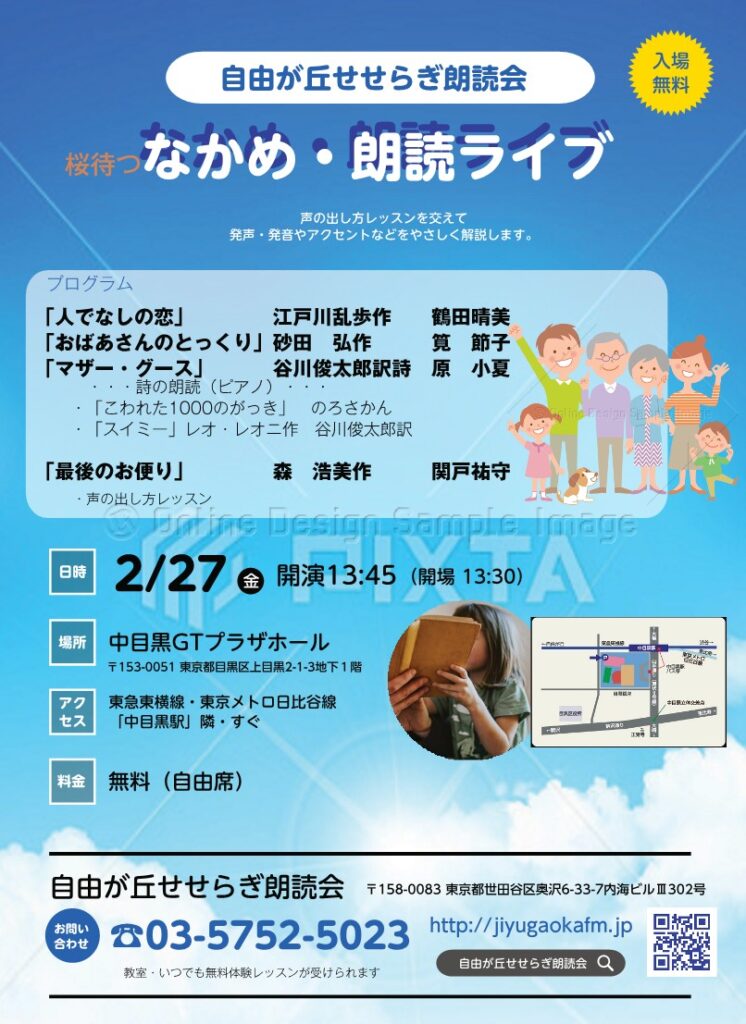 ②「桜待つ なかめ朗読ライブ」自由が丘せせらぎ朗読会